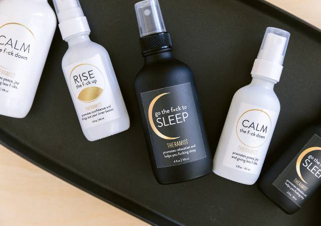 {ther • happy} produces handmade therapeutic products called theramists using organic essential oils, Flower Essences, and a touch of humor. The first product, Calm the F*ck Down, was originally made as an added tool for Natalie's postpartum… {ther • happy} produces handmade therapeutic products called theramists using organic essential oils, Flower Essences, and a touch of humor. The first product, Calm the F*ck Down, was originally made as an added tool for Natalie's postpartum Private Pilates clients to accompany their physical rehabilitation. One day, a client messaged Natalie after using it and said, “This really should be called, ‘Calm The F*ck Down!’” So, we renamed it, repackaged it, and, well - now it’s f*cking perfect. We sold all 200 bottles of our new product over the holidays in 2019, and we just keep growing! When Natalie’s Pilates studio closed in 2020, she decided to focus on making new products. Her newest Theramists, Go the F*ck To Sleep & Rise the F*ck up are now available.
