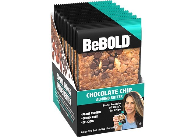 BeBOLD energy bars was started by Stacy Madison, Founder of Stacy's Pita Chips. They are delicious energy bars made of nut butters, nuts, oats, maple, wildflower honey and chia. All we do is MIX, PRESS, PACK and CHILL. There are 2 flavors: Almond… BeBOLD energy bars was started by Stacy Madison, Founder of Stacy's Pita Chips. They are delicious energy bars made of nut butters, nuts, oats, maple, wildflower honey and chia. All we do is MIX, PRESS, PACK and CHILL. There are 2 flavors: Almond Butter and Peanut Butter with additional flavors coming soon! They are PLANT BASED, gluten free, dairy free, Kosher and 18 grams of whole grain. Our bars are made of wholesome ingredients. For us to maintain the best texture and flavor, we store refrigerated or frozen, but you can keep them with you ‘on the go’ for 2 weeks.