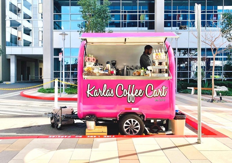 Mobile Coffee Cart Catering - Mobile Espresso Bar - Specialty Coffee Catering Service - Coffee Bar for Events Corporate - Weddings - Outdoor Coffee Catering Karla's Coffee Cart is a female-owned coffee catering service based in Los Angeles. Karla… Mobile Coffee Cart Catering - Mobile Espresso Bar - Specialty Coffee Catering Service - Coffee Bar for Events Corporate - Weddings - Outdoor Coffee Catering Karla's Coffee Cart is a female-owned coffee catering service based in Los Angeles. Karla combines her barista experience with her Latina culture and passion for specialty drinks to provide personalized, unlimited coffee beverages for events such as movie sets, private parties, corporate events, and weddings. Services include hand-crafted lattes, cappuccinos, americanos, espresso beverages, delicious teas, and signature cold brew drinks. The coffee cart is designed to be eye-catching and add a unique and hip vibe to events. Additionally, the company also provides mobile bar services for offices.